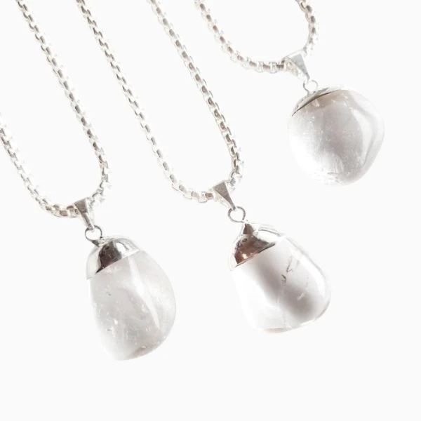 Dije Rolado de Cuarzo Cristal mediano con Baño de Plata